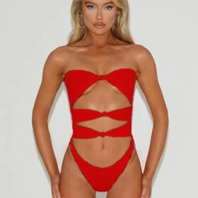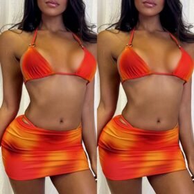 Strappy Bikini Two Piece Sexy Women’s Halter Neck Crisscross Ribbed Swimsuit Set